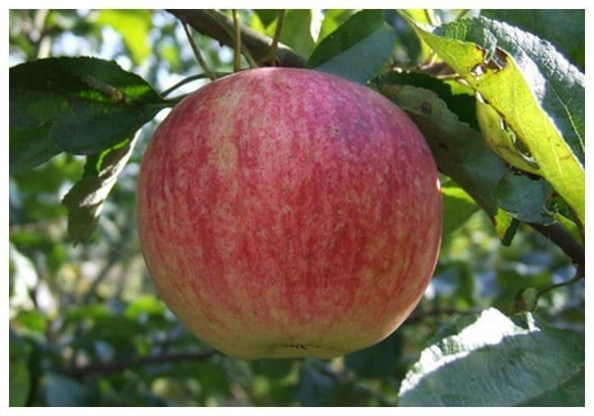Фрукты данного сорта имеют среднюю или большую величину, округлую форму и симметричный очерток. Цвет кожицы может варьироваться от зеленовато-желтого до ярко-красного. На поверхности яблок видны полосы и пятна, которые придают им декоративный вид.