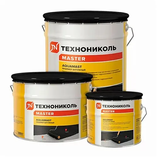 Праймер битумный AquaMast представляет собой раствор нефтяных битумов в специально подобранных органических растворителях. Обладает высокой проникающей способностью и небольшим временем высыхания. Праймер AquaMast предназначен для надёжного сцепления гидроизоляционных материалов с основанием. Применяется как с рулонными битумными материалами, так и с обмазочной гидроизоляцией. Расход праймера — 0,35 л/м2.