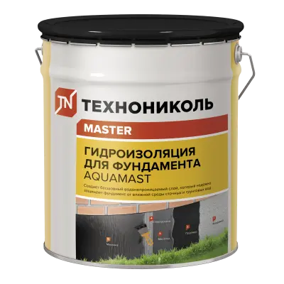 Мастика гидроизоляционная битумная для фундаментов AquaMast представляет собой полностью готовый к применению материал на основе нефтяного битума, содержащий технологические добавки, минеральные наполнители и растворитель. Предназначена для обмазочной гидроизоляции конструкций (бетонных, железобетонных, металлических, деревянных и др.), заглубляемых в землю и контактирующих с влажной средой: фундаментов, свай и т.п.