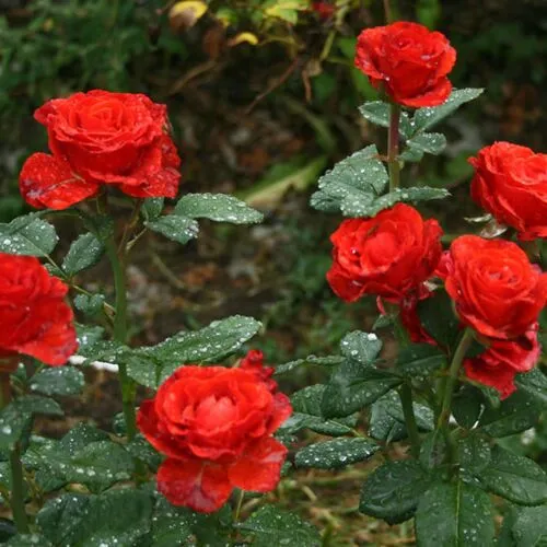 Окраска розы очень яркая, пламенно-красная. Цвет может немного хамелеонить в зависимости от освещения или условий – от малиново-красного до оранжево-красного. Но цвет всегда сочный, чистый, ровный, почти не меняется с возрастом цветков. На солнце не выгорает. Устойчивость к дождю очень высокая. В вазе цветы сохраняют свежесть до 1 месяца.
