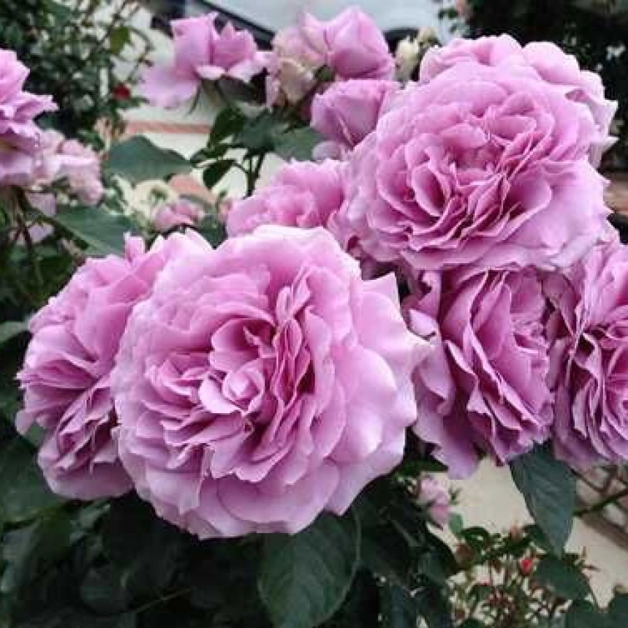 У этой розы бутоны высокие, изящные, фиолетово-сиреневые, цветки бледно-лиловые с сильным ароматом. Сорт известен своей адаптивностью и широко распространен, имеет сертификат ADR, хотя в сырое лето может страдать от мучнистой росы.