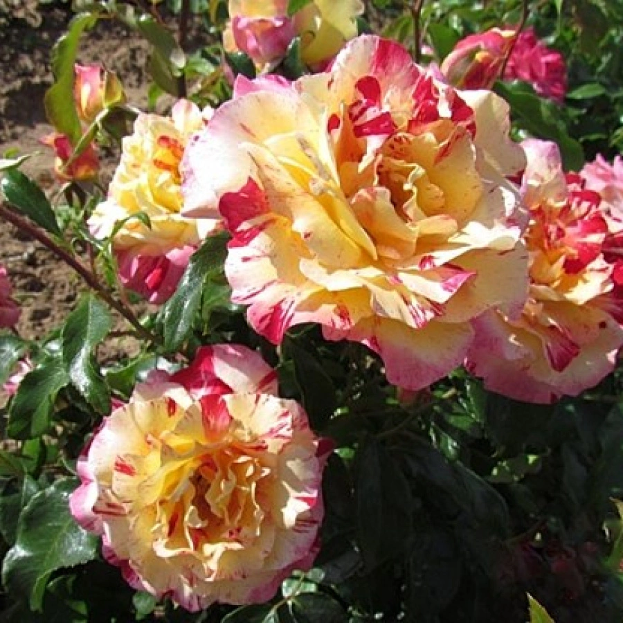 Основные бутоны зачастую состоят из большого количества отдельных лепестков — от 35 до 40 штук. Отличительной чертой сорта является наличие нескольких полос на соцветиях, из-за чего данную розу нередко называют тигровой.