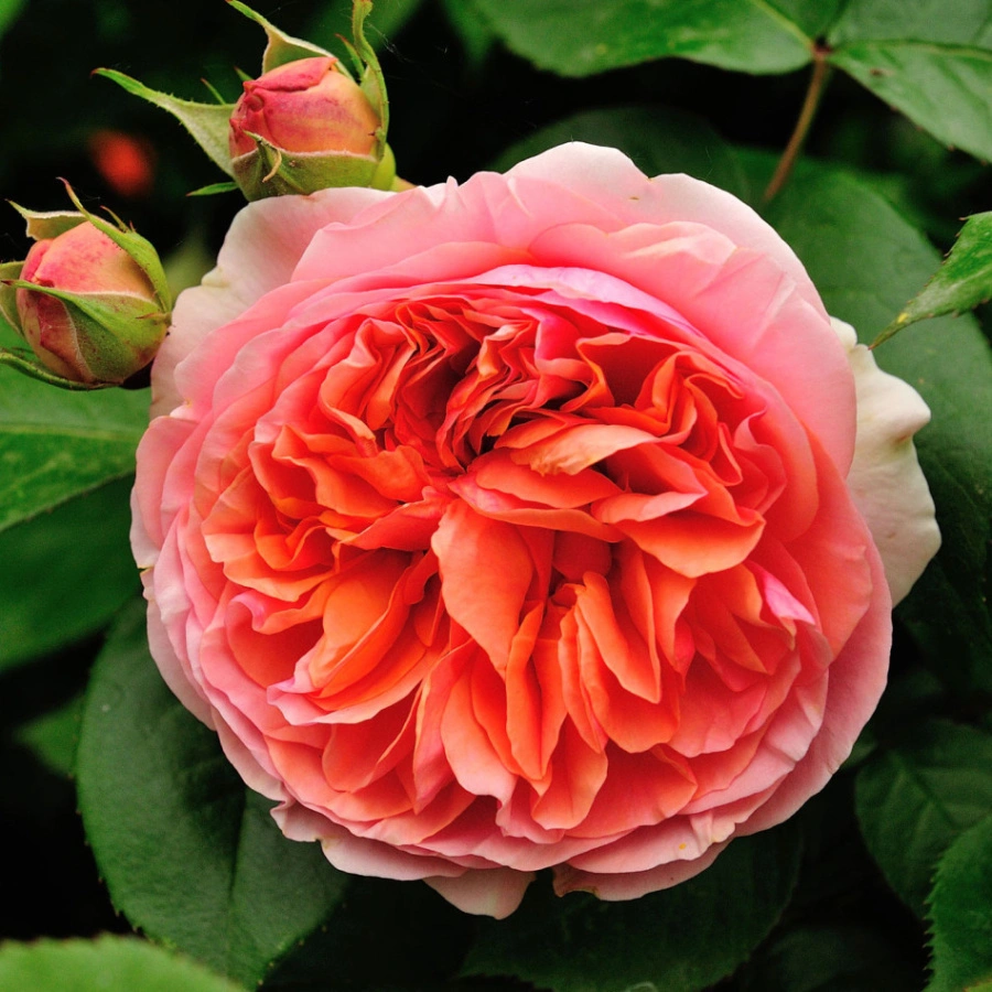 Плотный, утонченно заостренный насыщенно-оранжевый бутон в процессе роспуска постепенно тускнеет, принимает чашевидную форму. Окраска у него изменчивая, с переливами персиковых и розовых оттенков. По центру цветка она более темная, оранжевая с коралловым оттенком, а наружные лепестки окрашены нежнее. Под прямым солнцем роза может становиться бледно-розовой.