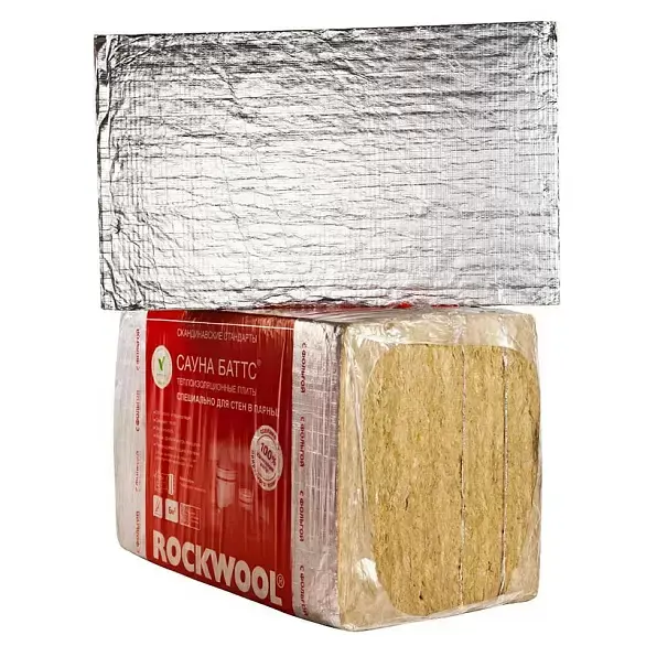 САУНА БАТТС – это теплоизоляционный материал, который был разработан как утеплитель Rockwool для бань и саун. Он легкий, теплый, не накапливает влагу, и имеет с одной стороны покрытие из алюминиевой фольги, которое не только служит дополнительным барьером для намокания, но и отражает тепловую энергию внутрь помещения. Поэтому баня, при строительстве которой применялся данный материал, будет особенно жаркой.