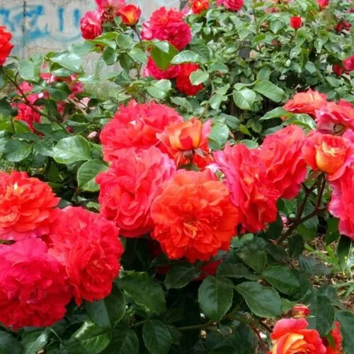 Цветки имеют необычную окраску в сочетании красных и оранжевых тонов. Верхняя часть лепестков окрашена в красные и пурпурные тона, а вот нижняя имеет оранжевый, почти огненный тон. Из-за этого цветок кажется пылающим, а цветущий куст словно полыхает, особенно при соответствующем освещении. Форма лепестков и самого густомахрового среднеразмерного (7-8 см) цветка считается классической. Соцветие собрано из 3-5 бутонов. Роза обладает классическим розовым ароматом небольшой интенсивности.