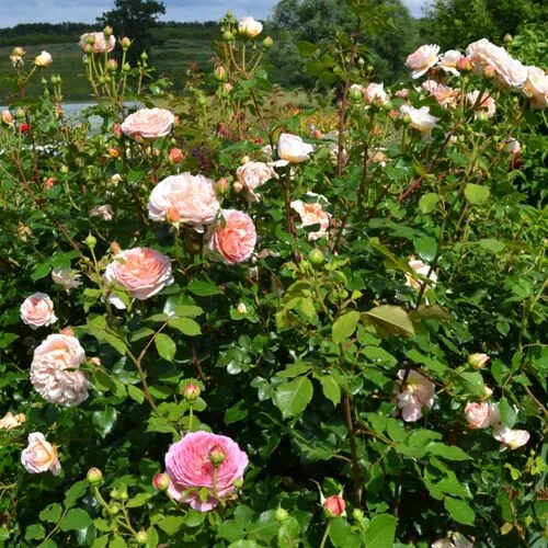 У этого сорта довольно много достоинств. Он прекрасно адаптирован к жаре, не выгорает при температурах выше +35 градусов. Волны цветения сменяют друг друга в течение всего теплого сезона, что довольно необычно для крупноцветковой английской розы. Также Абрахам Дерби хвалят за: