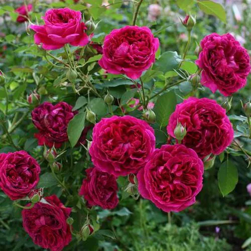 Цвет густо-малиновый, иногда его описывают как винно-красный с фиолетовым оттенком, очень глубокий, бархатный. Цветок, действительно, немного меняет оттенок: едва распустившиеся цветки имеют свекольный оттенок, с возрастом цвет приобретает ярко выраженные пурпурные нотки. На активно цветущем кусте разница хорошо заметна. Лепестки по отцветанию быстро и качественно опадают, можно обойтись без обрезки.