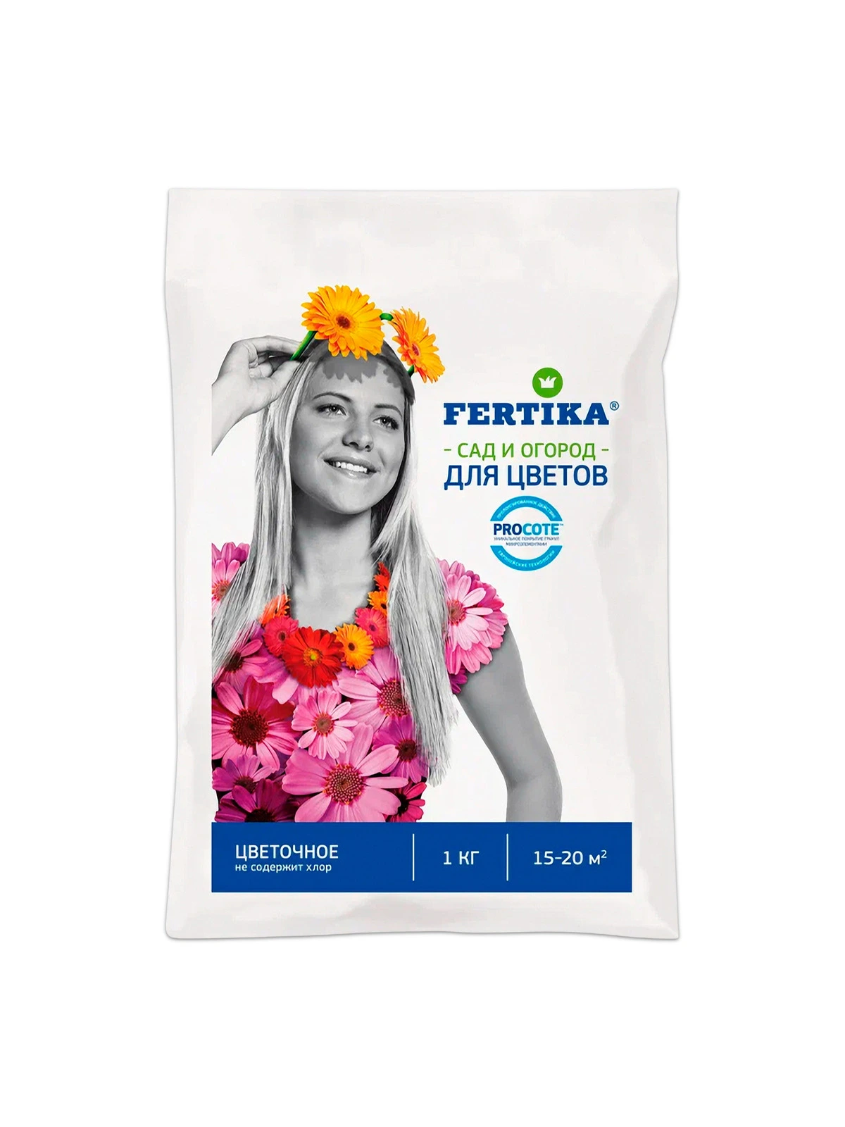 Фертика Цветочное – комплексное минеральное гранулированное удобрение, предназначенное для однолетних и многолетних цветов и луковичных растений открытого и закрытого грунта, способствует образованию крупных соцветий с яркой окраской, значительно удлиняет период цветения. Пролонгированного действия, содержит оптимальный и сбалансированный состав макро- и микроэлементов. Не содержит хлора, не подкисляет почву. Удобрение Фертика Цветочное совместимо с большинством других удобрений, стимуляторов роста и пестицидов.