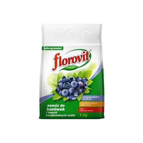 Удобрение Флоровит (FLOROVIT) для голубики, брусники, черники, клюквы – комплексное минеральное гранулированное удобрение для подкормки растений, предпочитающих кислые и слабокислые почвы (с низким уровнем pH – от 3,8 до 4.8). Характерная особенность удобрения – отсутствие нитратов. Удобрение Флоровит способствует подкислению почвы. Растения, для которых предназначено это удобрение, при выращивании в почве с низким уровнем pH, отличаются большим количеством молодых побегов, у них нет преждевременного пожелтения и опадания листьев – удобрение предотвращает хлороз листьев.