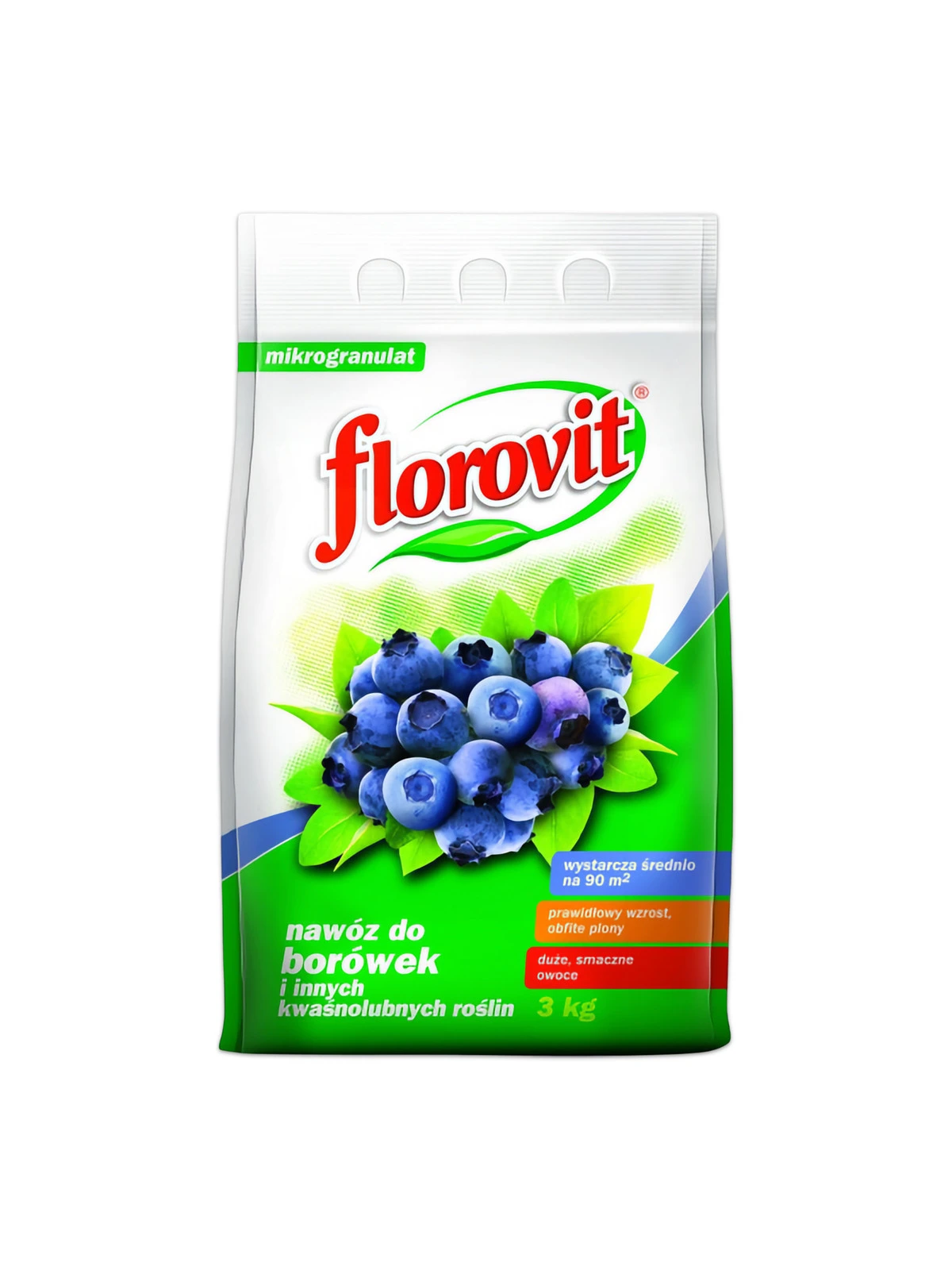Удобрение Флоровит (FLOROVIT) для брусники, черники, голубики, клюквы – комплексное минеральное гранулированное удобрение для подкормки растений, предпочитающих кислые и слабокислые почвы (с низким уровнем pH – от 3,8 до 4.8). Характерная особенность удобрения – отсутствие нитратов. Удобрение Флоровит способствует подкислению почвы. Растения, для которых предназначено это удобрение, при выращивании в почве с низким уровнем pH, отличаются большим количеством молодых побегов, у них нет преждевременного пожелтения и опадания листьев – удобрение предотвращает хлороз листьев.