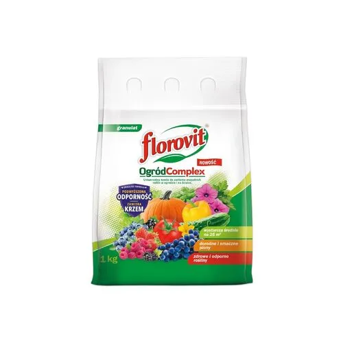 Флоровит универсальное гранулированное для растений Сад Complex - удобрение, водорастворимые гранулы которого содержат все ингредиенты, необходимые для правильного роста и развития растения. Флоровит Садовый комплекс содержит кремний, который необходим для правильного роста и развития деревьев, плодовых кустарников, овощей, декоративных растений и многолетних газонов.