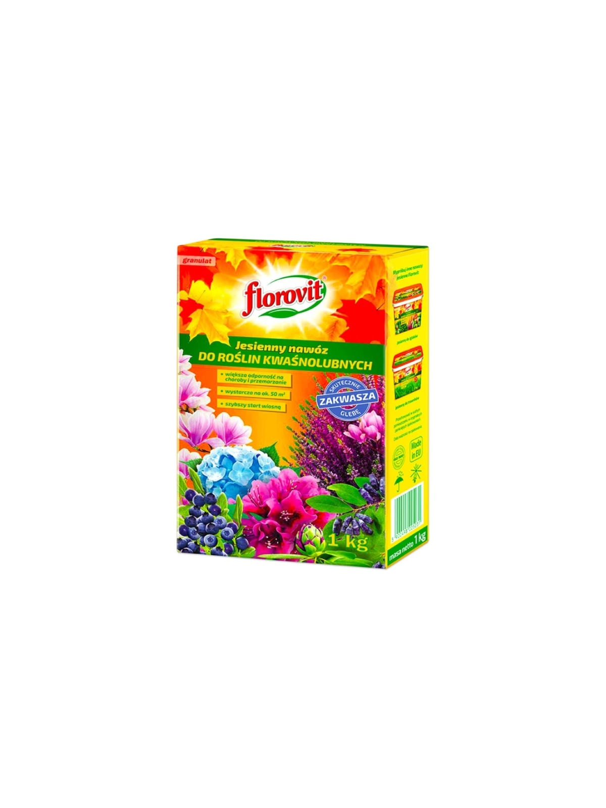 Удобрение Флоровит (FLOROVIT) осеннее для голубики, брусники, черники, – комплексное минеральное гранулированное удобрение для подкормки растений, предпочитающих кислые и слабокислые почвы (с низким уровнем pH – от 3,8 до 4.8). Характерная особенность удобрения – отсутствие нитратов и небольшое количество азотных соединений в целом. Удобрение Флоровит способствует подкислению почвы.