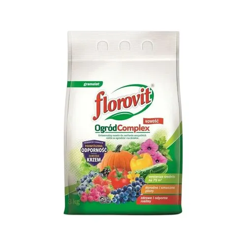 Флоровит универсальное гранулированное для растений Сад Complex - удобрение, водорастворимые гранулы которого содержат все ингредиенты, необходимые для правильного роста и развития растения. Флоровит Садовый комплекс содержит кремний, который необходим для правильного роста и развития деревьев, плодовых кустарников, овощей, декоративных растений и многолетних газонов.