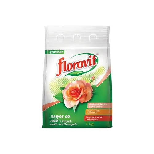 Удобрение Флоровит (FLOROVIT) для роз и других цветущих растений – гранулированное минеральное садовое удобрение с большим содержанием минеральных веществ в форме, отвечающей потребностям роз. Его применение благоприятствует интенсивному росту кустов, стимулирует образование боковых побегов, придает интенсивную окраску листьям и цветам. Рекомендуется применять для других цветущих растений открытого грунта: георгинов, пионов, гладиолусов, лилий, тюльпанов, нарциссов, бархатцев, шалфея и других.