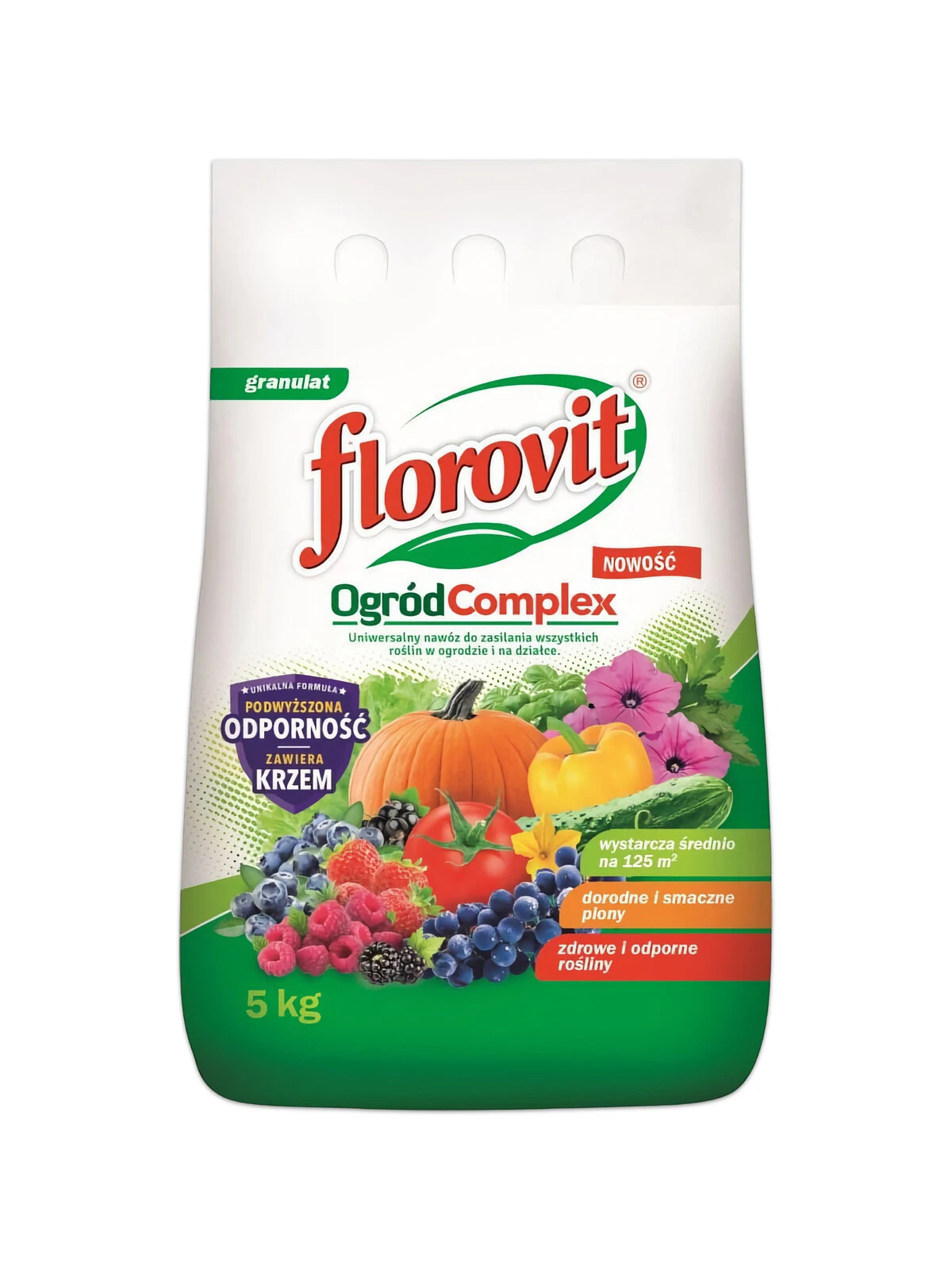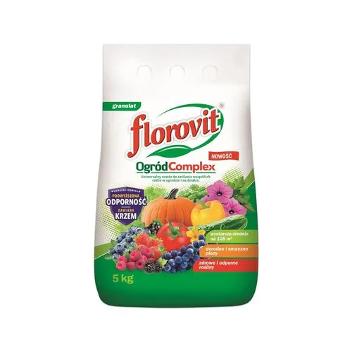 Флоровит универсальное гранулированное для растений Сад Complex - удобрение, водорастворимые гранулы которого содержат все ингредиенты, необходимые для правильного роста и развития растения. Флоровит Садовый комплекс содержит кремний, который необходим для правильного роста и развития деревьев, плодовых кустарников, овощей, декоративных растений и многолетних газонов.