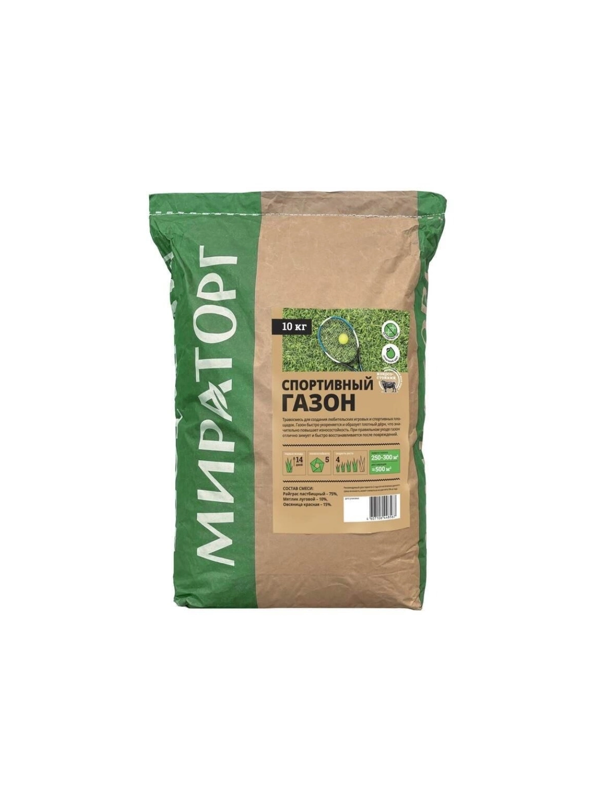 Травосмесь «Газон Спортивный» предназначена для создания любительских игровых и спортивных площадок. Газон быстро укореняется и образует плотный дёрн, что значительно повышает износостойкость. При правильном уходе газон отлично зимует и быстро восстанавливается после повреждений.