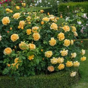 Английские розы получены в результате скрещивания французской, дамасской, бурбонской и других роз с современными сортами чайно-гибридных роз и роз класса флорибунда.