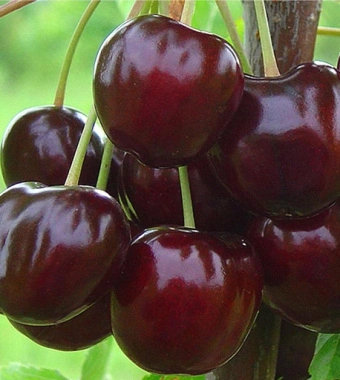 Черешня сорта "Валерий Чкалов" имеет крупные, сочные и сладкие плоды, окрашенные в темно-красный цвет. Окраска плодов может немного варьироваться в зависимости от погодных условий и места выращивания. У черешни этого сорта хорошая транспортабельность, что позволяет ее успешно транспортировать на большие расстояния без потери качества.