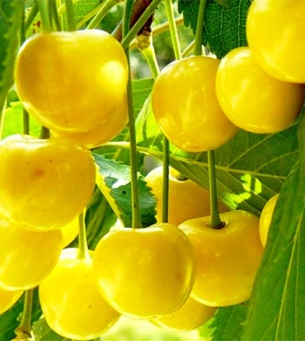 Ягоды этого сорта черевишни крупные, округлой формы, жёлтого цвета с насыщенным вкусом и ароматом. Мякоть сочная, сладкая, с небольшой кислинкой. Характеристика ягоды черевишни сорта «Чермашная» - это ее плотность и устойчивость к дождю и влаге.