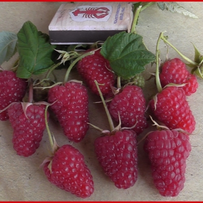 Ягоды конусовидной формы имеют сочную и плотную мякоть со сладким вкусом и ярким малиновым ароматом. Средний вес одной ягоды составляет 6 г, а самая крупная может вырасти до 12 г. Плоды легко снимаются с плодоножки, отличаются хорошей транспортабельностью, в течение 3-4-х дней не теряют форму и не текут. Они обладают абсолютной универсальностью, их можно использовать как для употребления в свежем виде, так и для различных десертов и заготовок. Дегустационная оценка по пятибалльной шкале составляет 4,6 балла.