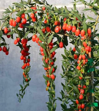 Внешний вид: Кусты этого сорта годжи достигают высоты около двух метров и обладают продолговатыми ярко-красными плодами.