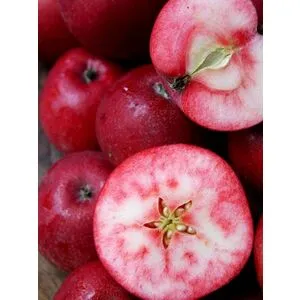 - Плод — яблоко округлой формы (диаметр преимущественно 5–12 см, масса от 5–10 до 300–400 г) с сочной кислой, кисло-сладкой или сладкой мякотью