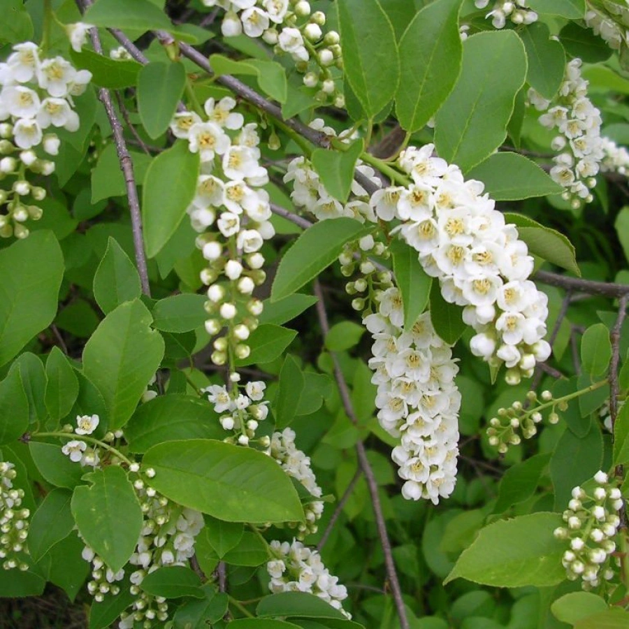 Цветение у черемухи обильное и очень красивое. Бутоны мелкие и белые, они собраны в кисти по 15-30 штук. Длина соцветия составляет 15 см. Аромат цветов тонкий и у некоторых сортов практически неощутимый. Период цветения длится около 2 недель.