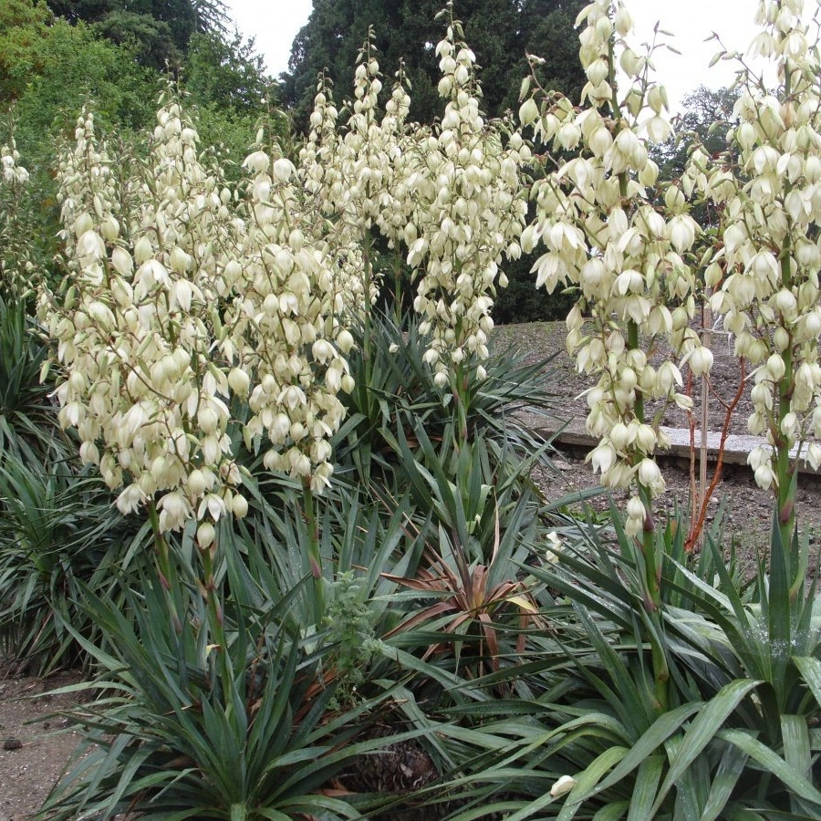 Белая Юкка высаживается в Подмосковье весной или осенью на хорошо освещенных участках с легким песчаным грунтом. Расстояние между растениями должно быть не менее 60 см. Перед посадкой в грунт необходимо замочить корни в течение 30-60 минут.