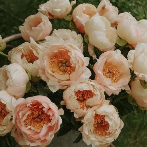 Цветки пиона "Кингс Дэй" обладают чашевидной формой и достигают диаметра от 16 до 18 см. Их окраска очаровывает лососево-оранжевым оттенком, с темно-желтым центром, создавая яркое и привлекательное сочетание цветов. Этот сорт идеально подходит для использования в различных видах цветочного оформления и обеспечивает великолепную срезку для букетов.