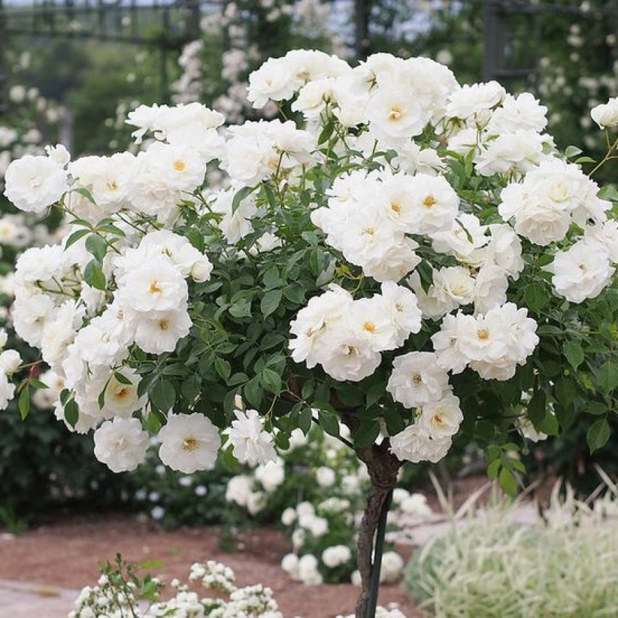 Устойчивость к заболеваниям. Современные сорта белых штамбовых роз обладают хорошей устойчивостью к болезням, что делает их отличным выбором для садоводов.