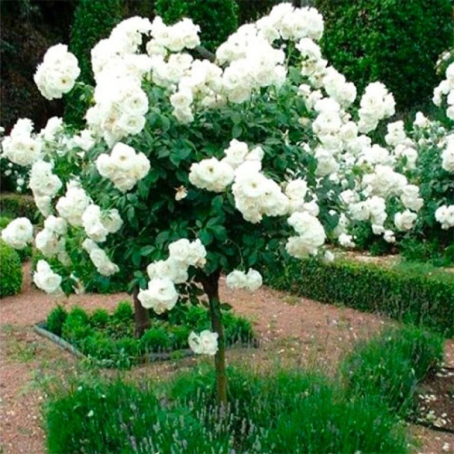 Универсальность. Белая штамбовая почвопокровная роза идеально вписывается в любой стиль ландшафтного дизайна. Она может стать центральным элементом сада, украсить входную зону или дополнить цветочную композицию.