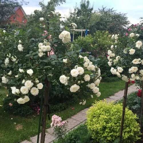 Эстетическая привлекательность. Белые розы символизируют чистоту, невинность и благородство. Их белоснежные цветы создают ощущение легкости и гармонии, делая сад более уютным и романтичным.