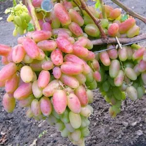 - Плоды — сочные ягоды с 1–4 мелкими семенами (в некоторых сортах семена отсутствуют) — собраны в гроздья, которые варьируют по форме и окраске: могут быть зелёными, розовыми, жёлтыми, тёмно-красными, чёрно-фиолетовыми (обычно с восковидным налётом).